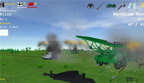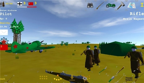 3、低模3D像素风格与二战主题高度契合,通过简洁的建模手法还原出战壕、碉堡、军用载具等经典战场元素,色彩搭配强化了战争氛围的渲染,带来舒适且协调的视觉感受。
