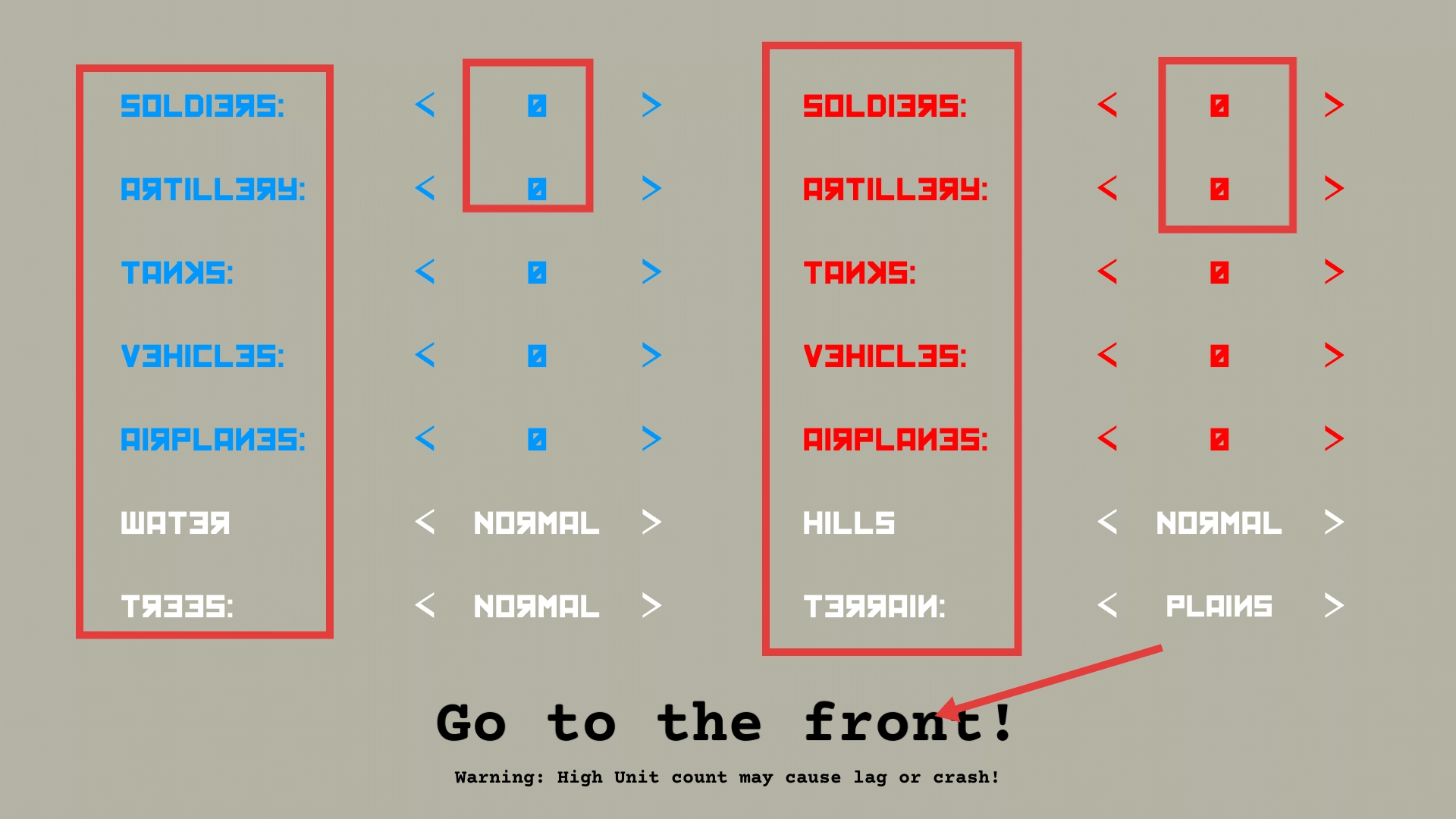 2、配置士兵、火炮、坦克等单位及地形后,点击【Go-to-the-front!】,进入前线开始战斗。