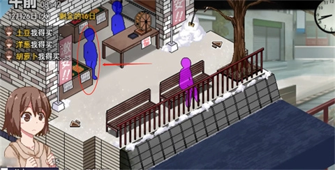 一个是在比较晚些时候(似乎)卖食材的地方附近的公寓楼,早上能看到她和她的丈夫;另一个则需要先完成小萝莉的任务,之后在下午找到公共厕所旁的小萝莉聊天,再前往山上,就能发现第二个新角色正遭遇打劫。