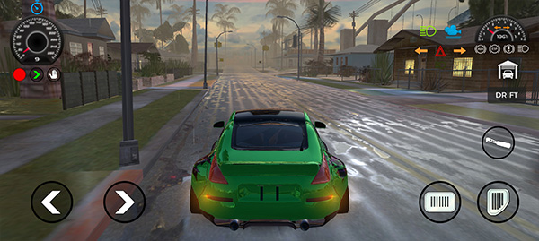 进入游戏之后你可以随意的驾驶自己的车辆,左边的两个键位是方向控制键位,右下角两个键位是刹车和行驶车辆的键位;