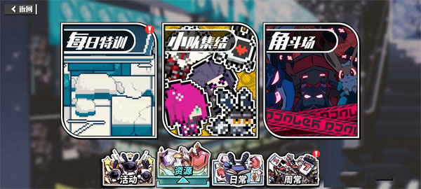 1、首先来到主界面然后点击试炼,在这里看到资源的选项,里面的小队集结一定是很多玩家都容易错过的界面,在这里就能看到各种羁绊了。五人同行就是主角团队的几个角色在里面相同羁绊的角色可以组队自动刷怪,看到战斗冒险可以到小队累计击败的怪物的数量,随着时间不断的累加,不用玩家操作,只要按时去领取收益就可以了。