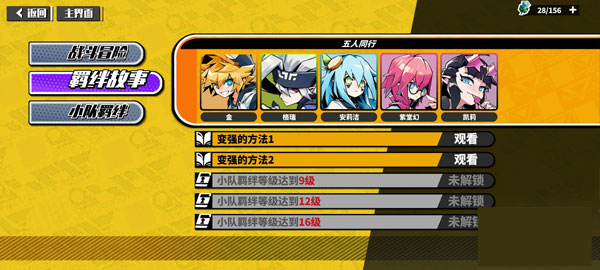 2、还有羁绊冒险故事,随着相关角色的提升而提升,会不断解锁各种隐藏的剧情,也是玩家培养这些cp角色的动力之一,当然小队羁绊对于玩家的战斗提升最为重要,等级越高获取的相应加成也是越高,只是需要慢慢的培养提高。