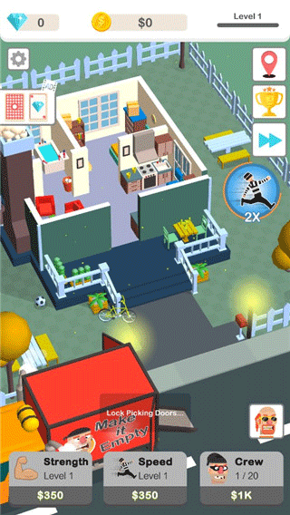 1以扮演强盗、小偷这类角色的方式,去迎接搬家闯关的挑战,这种玩法十分新颖有趣。