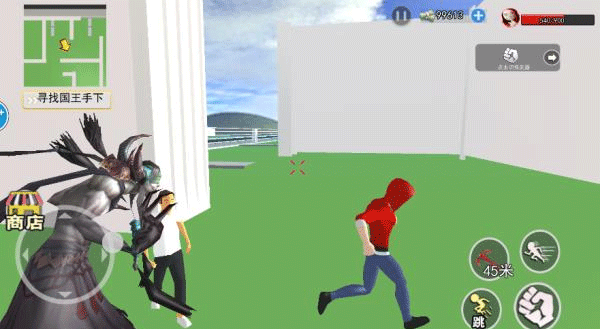 2、通过虚拟按键可以做到移动、奔跑、跳跃、拉钩锁等一系列操作。
