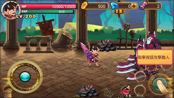 2、点击攻击按钮进行攻击敌人,配合方向键可以进行连击。