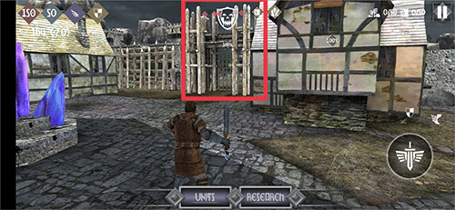 1、开启《英雄和城堡2》游戏后,朝着带有标识的大门位置进发。