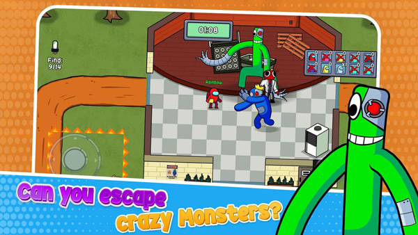 《彩虹朋友幸存者2》最新版本,是一款趣味性十足的冒险逃脱类手游。该游戏以类似太空杀的模式为基础设定,玩家在游戏里要操控角色去拯救那些被绑架的儿童。游戏内关卡丰富多样,每一关都拥有独特的场景与变化。值得一提的是,游戏中的狼人摇身一变,成了令人毛骨悚然的彩虹怪物,这些怪物各自具备不同能力。玩家需要一边躲避它们的攻击,一边完成为期五天的任务,从而成功存活下来。