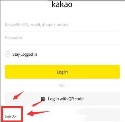 3、没有账号的朋友可以注册一个kaokao账号登录(黄色框框那个)