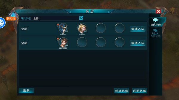 可自由加入和退出队伍,队友可互相赠送装备,可以帮助队友加送能量,并且可帮助队友复活