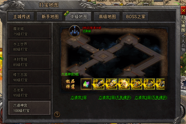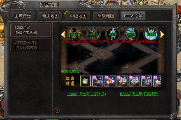 4、BOSS分为2层,每一层刷新【神话BOSS】刷新时间2~6小时