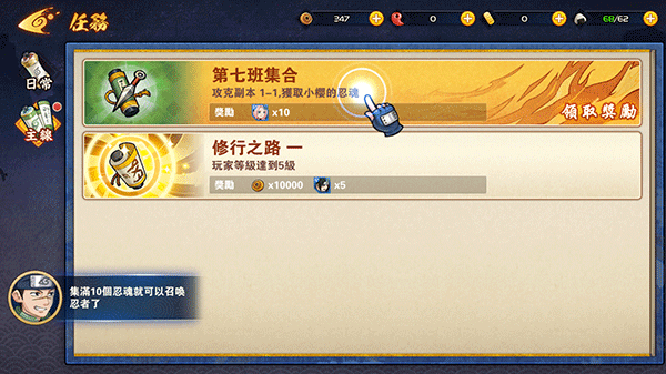 6、游戏内提供了很多火影角色,玩家可以前往酒馆进行招募