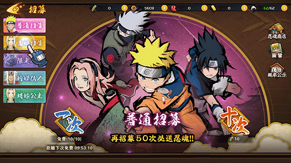 无需氪金,开局就送百万金币,热门SSS忍者任你招募。