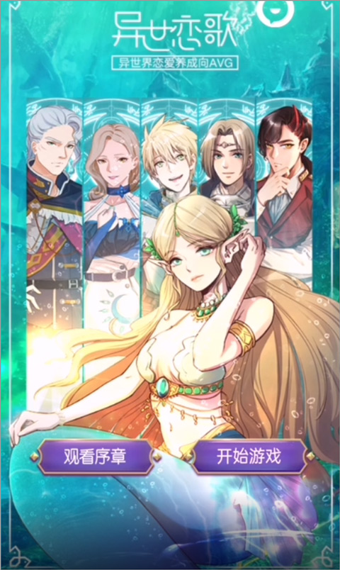 1、当玩家打开《异世恋歌》游戏,进入游戏主页面后,既能够观看序章,也可以选择开始游戏。