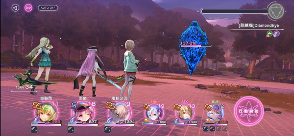 ,并且在战斗时只能派出三名角色,剩余的三名队员可以在回合中切换上场,并且每一位角色与敌人皆拥有两条代表生命值的能量条,分别为护甲(DP)与血量(HP),每一回合开始时,所有角色皆会获得法力点(SP),用于施放技能以对敌人造成更大伤害,或是为敌我方带来各式各样的增益效果(buff、debuff)。