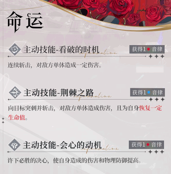 抗争队核心角色(阵眼)命运,开局提升抗争奏者15%的攻击,最高到30%。升星后每次受击必反击,所以七日任务和模拟作战一定要做,能白嫖升星。