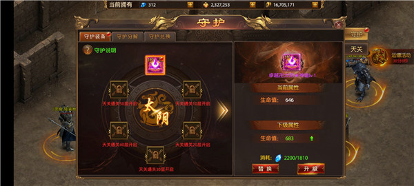 4、守护兑换可通过运营活动等途径收集天关魔珠,即可兑换高级守护装备。