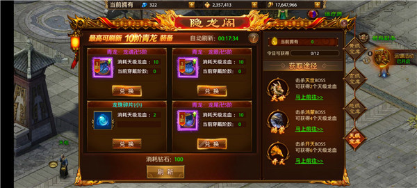 4、玩家可通过击杀副本BOSS获得龙血,可兑换青龙装备和珍稀道具。
