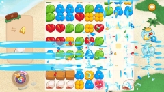 场上出现5个或是6个相同的元素相邻,点击后即可生成水流的道具,水流的主要作用是用来消除整排或是整列的元素,水流的方向会在每回合改变。