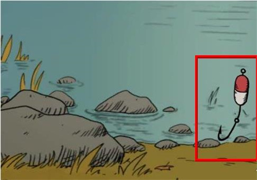 4、然后点击界面右上角的湖泊,在湖上我们可以看到一个钓鱼的鱼钩和浮标,点击它就可以开始钓鱼了。