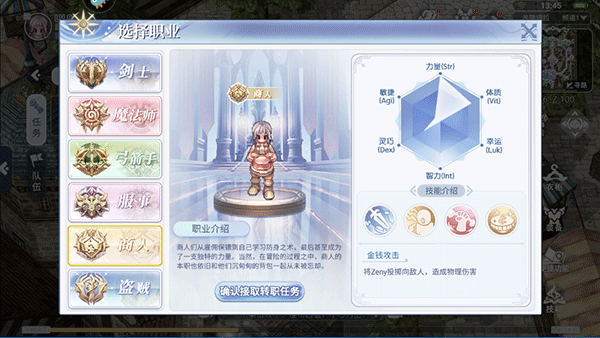 商人虽然没有较强的战斗力,但是却有很强的致富能力。他们甚至能够用金钱的力量以提升攻击能力。独特的道具鉴定能力让他们成为团队中财务支柱,为伙伴们提供资金援助。