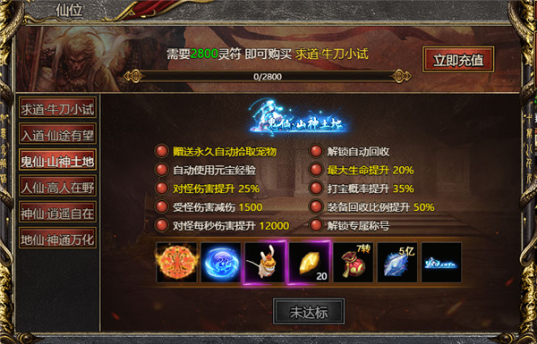 4、化神需要玩家收集指定数量的元宝,即可完成任务目标,并获得相应数量的元宝奖励。大道修行离不开财物的支持,展现你的财力吧。
