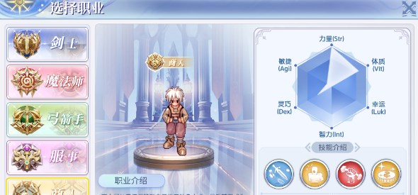 商人虽然没有较强的战斗力,但是却有很强的致富能力。他们甚至能够用金钱的力量以提升攻击能力。独特的道具鉴定能力让他们成为团队中财务支柱,为伙伴们提供资金援助。