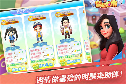 只要您的超市达到一定的好评值,就可以邀请到超级巨星来为您的商品代言喔!是不是很期待明星光临超市,人气爆炸的那一刻。