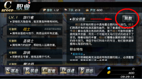 三、可以点击左上角的人物头像进入【状态界面】,选择【职业】按钮进行转职,选择一个喜欢的职业即可,所以不用觉得号练废了。