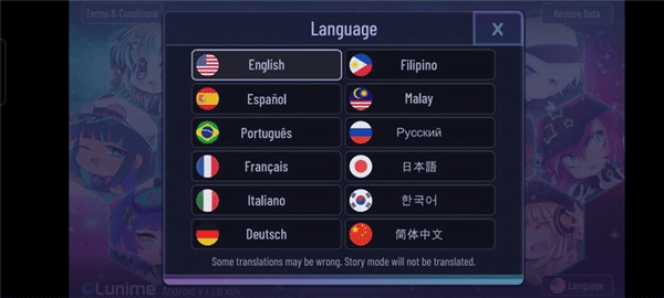 1、打开加查时空游戏,游戏加载界面右下角Language可以设置中文。