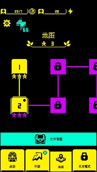 通关完成后,可自选幸运宝箱,免费可以打开三次,其他则需要看广告来获取开宝箱的次数。