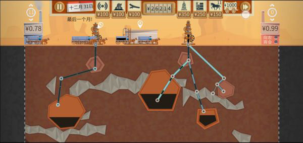 《石油大亨》中文免费版,即Turmoil,是一款从Steam平台移植至手机端的石油公司模拟经营类游戏。游戏背景设定在19世纪美国石油大探矿时期,玩家在游戏中扮演石油大亨,需开展开采油田、运输石油等活动以获取利润。游戏开始时,玩家要购置一块空地,然后在地图上挑选探矿点。通过挖掘地下资源,玩家可获取原油,随后将原油运往市场出售。此外,除了石油,玩家还能挖掘金块、稀有矿石等其他资源,从而增加收益。