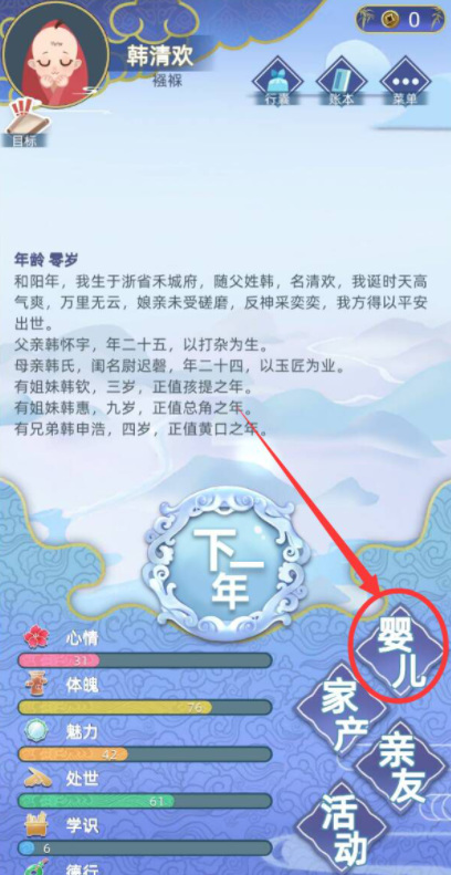 古代人生入宫为妃版本同时还有超多随机出生,玩家可能在贫困的家庭出生,靠着科举改变命运,也可能在一出生就含着金汤匙,从此享受大富大贵的一生。