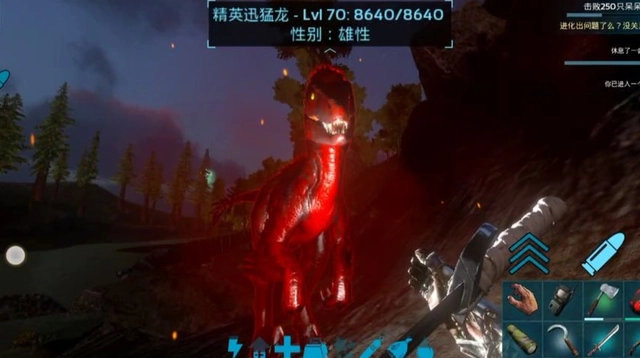 由于精英迅猛龙是精英龙,所以在正常的游戏模式中是无法直接驯服的,不过在我们击杀他后可以挖出大量的大腿肉,背包中还会爆出带属性的装备,是中前期一个非常重要的资源获取方法。