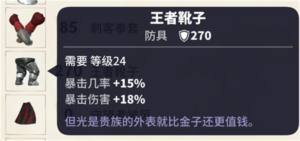 选择战士24级裤子,属性:暴击几率+15%,暴击伤害+18%。