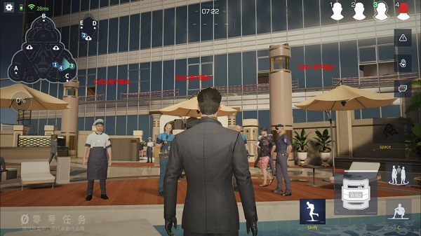 游戏中的地图要比《第五人格》中哪怕最大的地图永眠镇或者是游乐园还要大的多,再加上潜行和伪装的元素,让游戏地图中充斥着大量NPC,每个NPC都有着自己特定的动作,天狼星可以利用这一点混入人群中,来躲避莫比乌斯的视线,当然NPC是不会跑步的,如果在跑步的那一定是天狼星没错了!