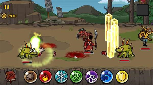 游戏中共有7种基本元素:土、火、冰、生命、雷电、水、护盾,每一种元素都可以和其他元素搭配,搭配的总数也没有限制,这就全凭玩家自己去发挥创造力了。