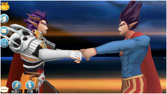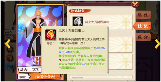 :和黄飞鸿霍元甲一样,这个合体技能也是一个“前排遭罪后排享福”的好技能,因此需要在鸟不拉屎大王的生命值尽量压低的前提下使用,以让犯二魔王获得最大的攻击力收益。