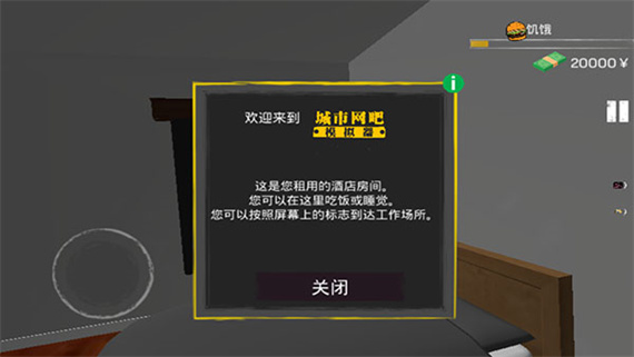 2、玩家租用了一个酒店房间,你可以在这里吃饭或睡觉,还可以按照屏幕上的标志到达工作场所。