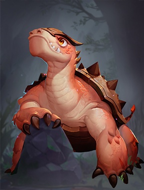 身形巨大的淡水龟,坚硬的外壳让它具有很强的防御力。但也由于体型原因,四肢较短所以移动速度缓慢。它坚硬的外壳可以为整个团队吸收大量的伤害,且第一次进化之后领悟的技能“防御大师”使它的TANK能力更强。在正面突破敌方防御的时候,可以通过一或两只碳龟处于前排承担伤害,为后排创造输出环境。且碳龟是帮你战胜前期很多关卡的关键。