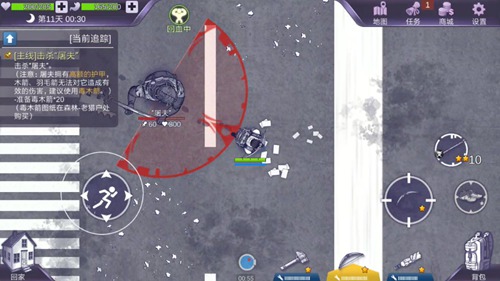 游戏采用俯视视角,地图无迷雾,一切地形与怪物尽收眼底,是迎难而上,还是避其锋芒都由您来决定;双轮盘操作,可一边移动一边射击,武器蓄力时,亦能利用走位躲掉怪物和感染者的攻击。