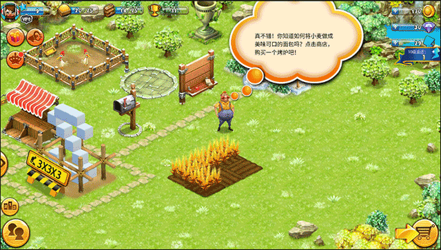 1、运行游戏后,在收割完麦子后,玩家需要建造一座烤炉才能利用好这些粮食,点击右下角的购物车选项;