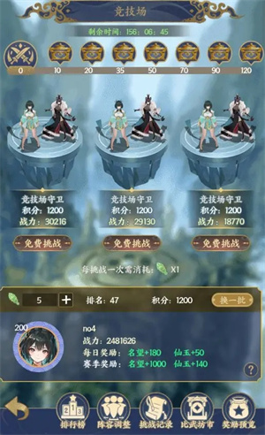 然后再次把上述的功能都挑战一番,直到进入瓶颈后,就去挑战竞技场吧,拿个不错的排名,也能获得不错的奖励呀~